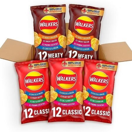 £18.00Original price was: £18.00.£9.99Current price is: £9.99.Brand Walkers Flavour Classic and Meaty Variety Unit count 1500.0 gram Number of items 12 Type Potato Chip Item form Chips Item weight 25 Grams Package type Bag About this item